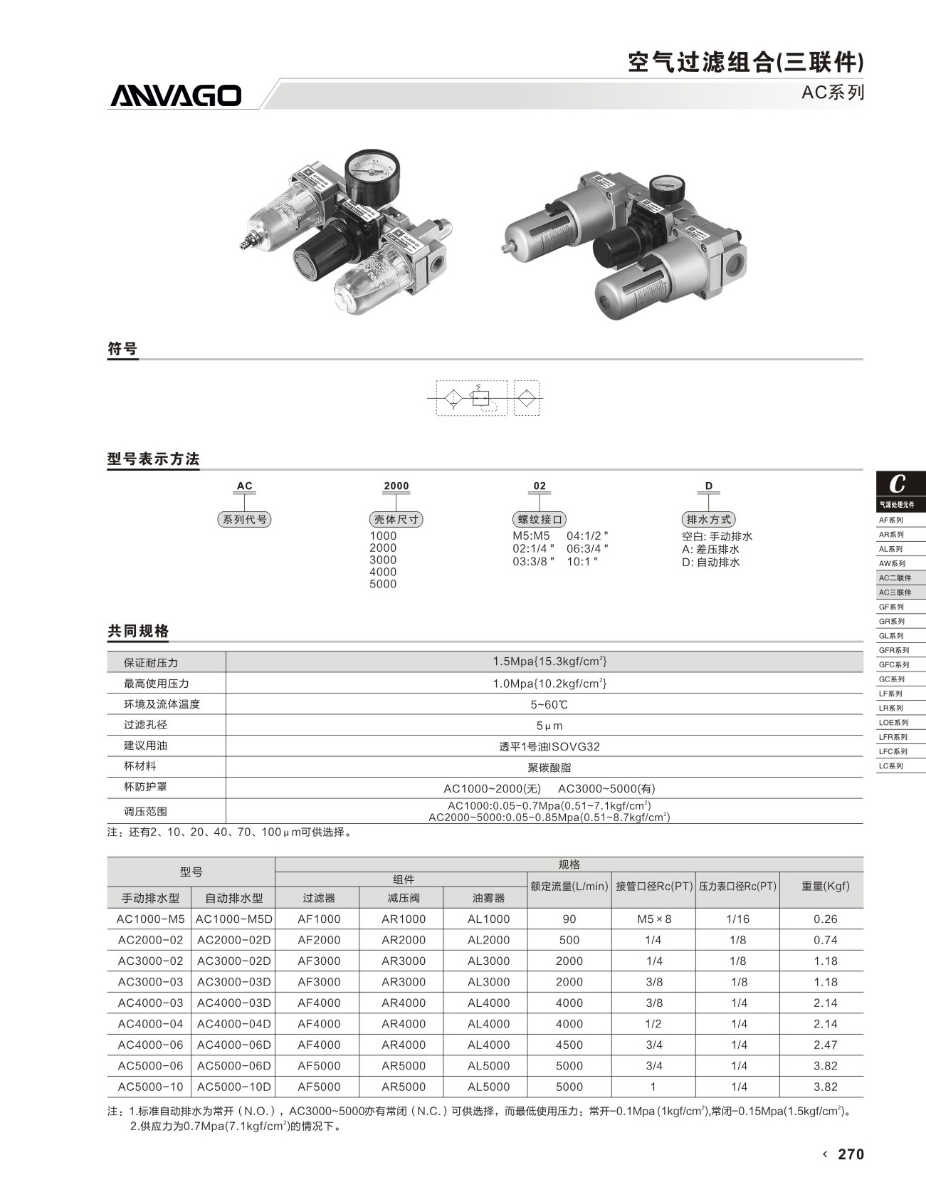 主页 > 产品中心 > 气源处理元件 > 三联件 > AC系列过滤组合三联件