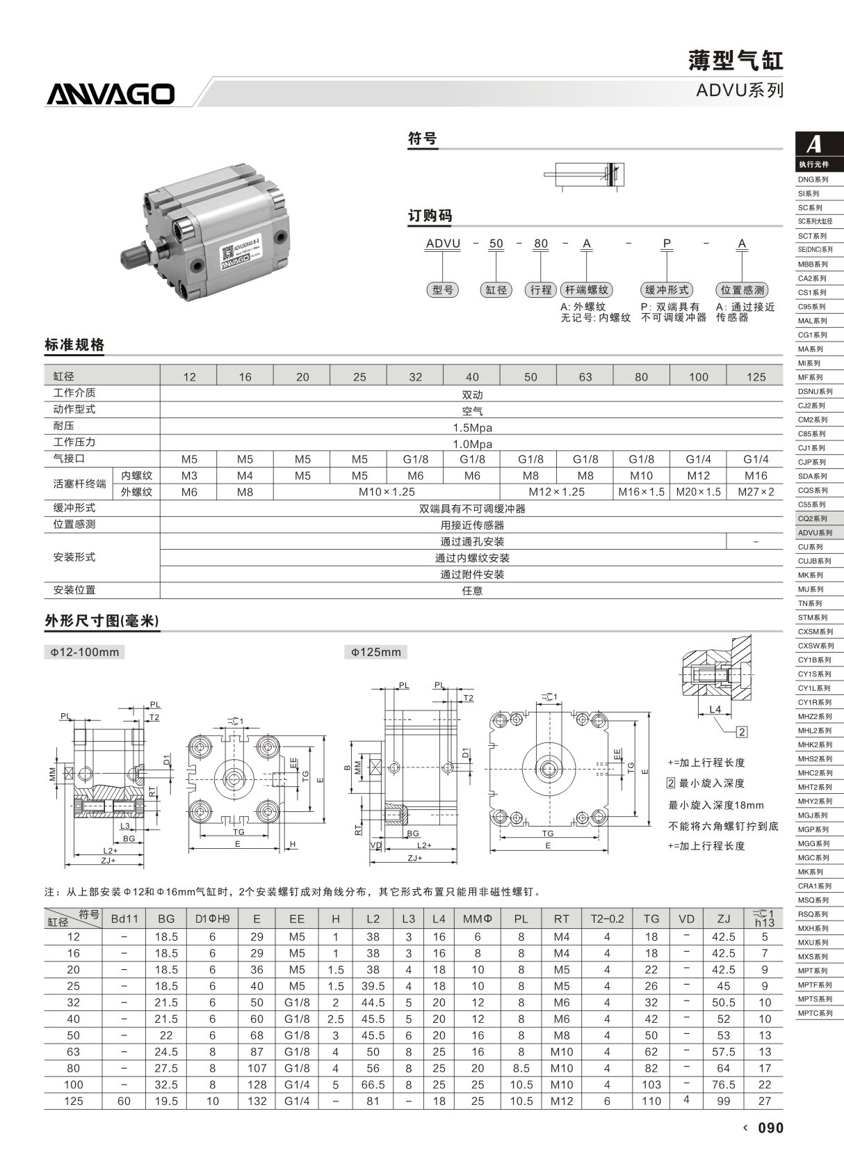 ADVU系列薄型气缸