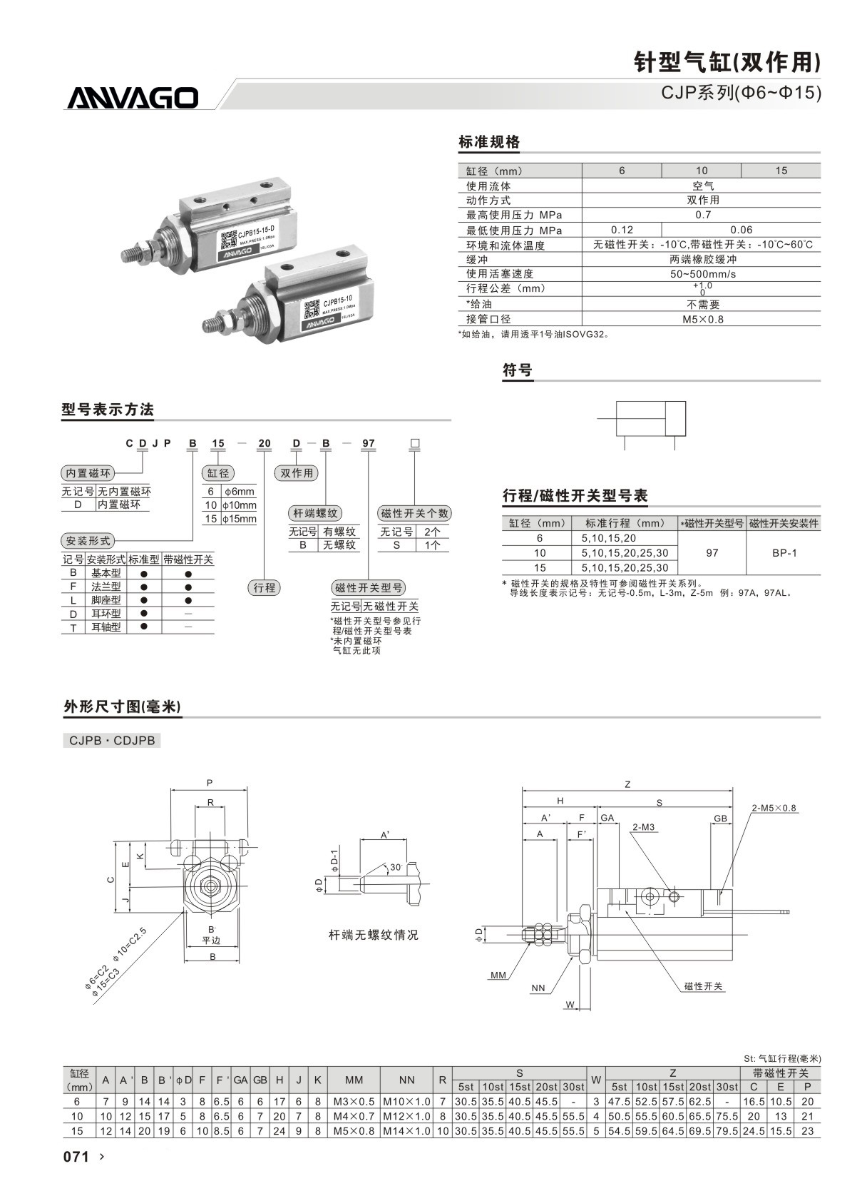 CJP系列双作用针型气缸