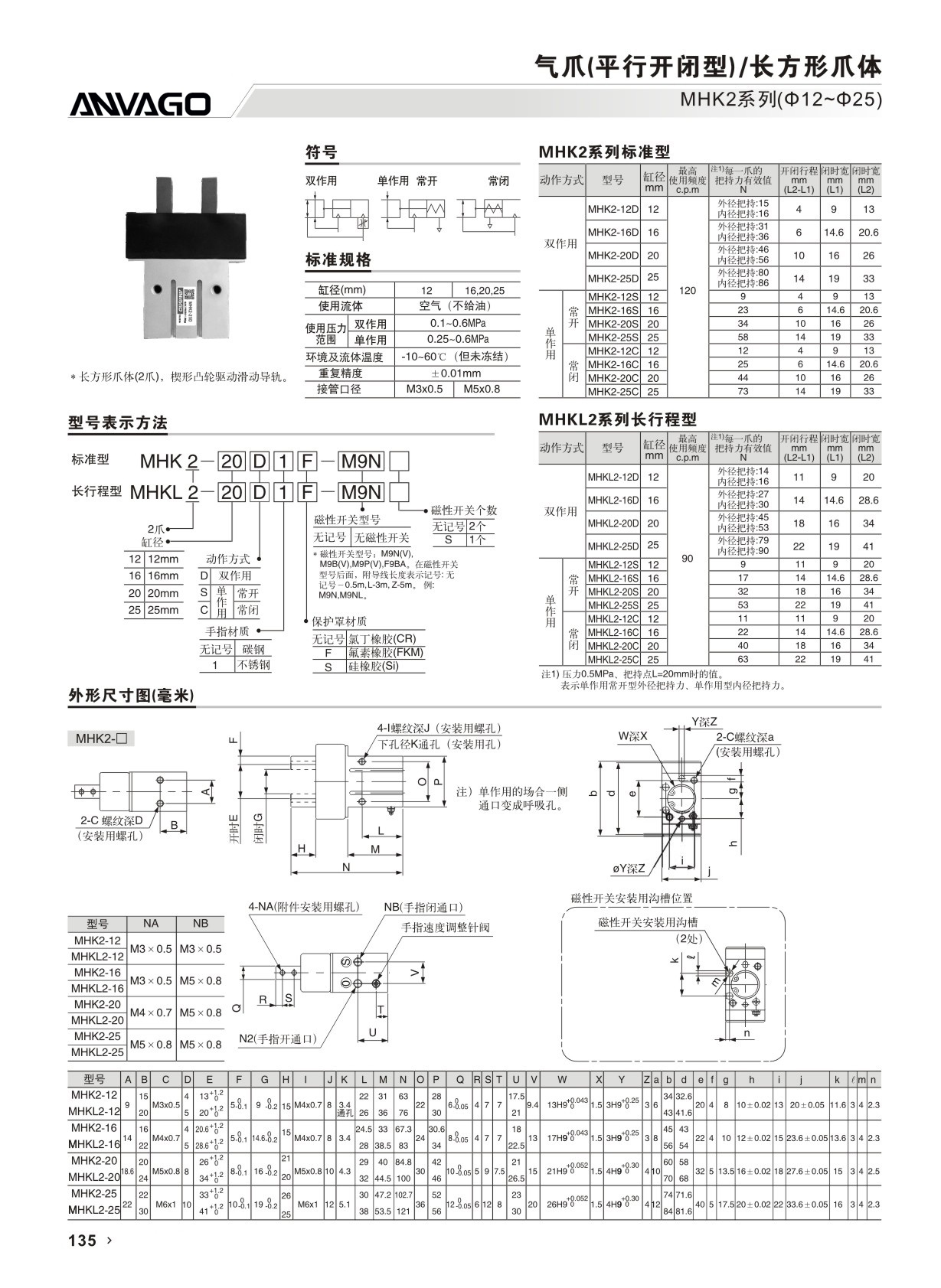 MHK2系列长方形平行开闭型气爪