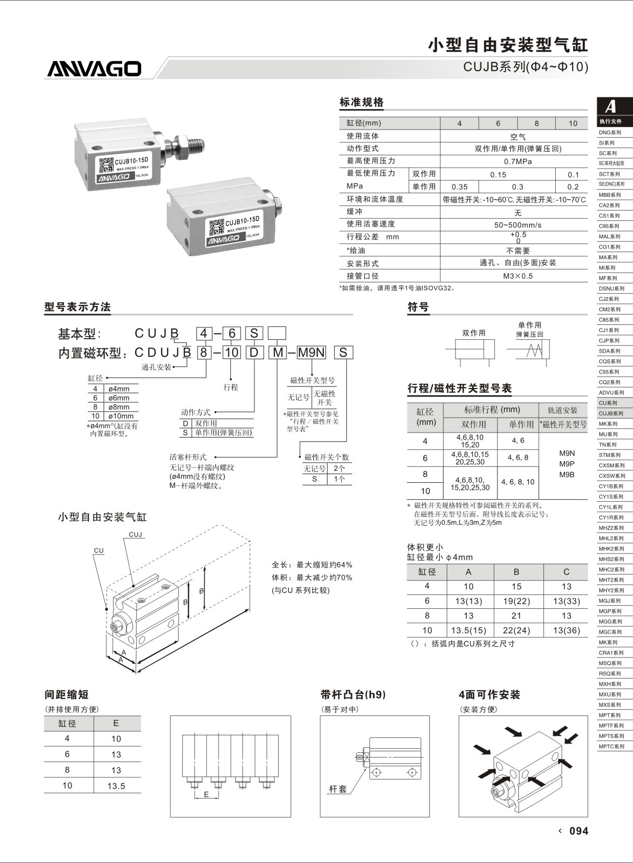 CUJB系列小型自由安装型气缸