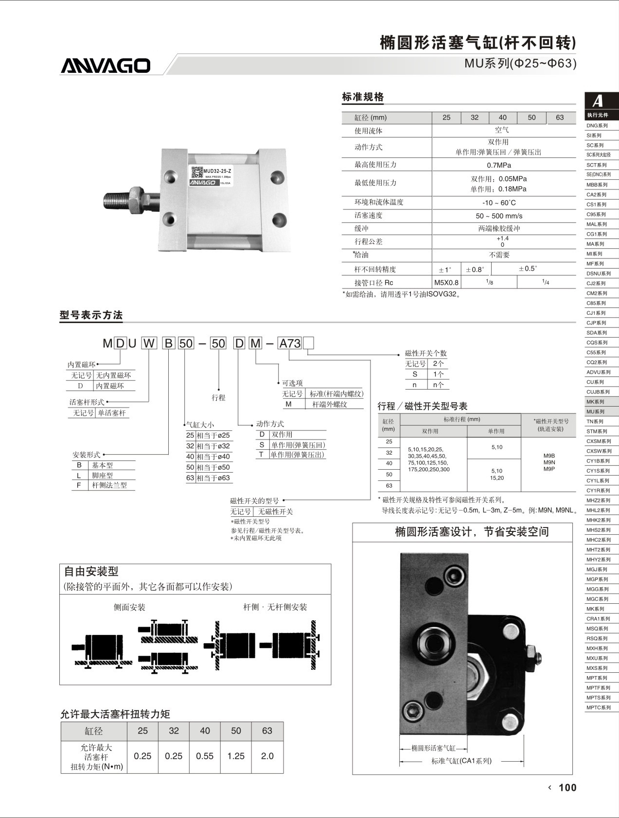 主页 > 产品中心 > 执行元件 > 自由安装气缸 > MU系列活塞杆不回转气缸